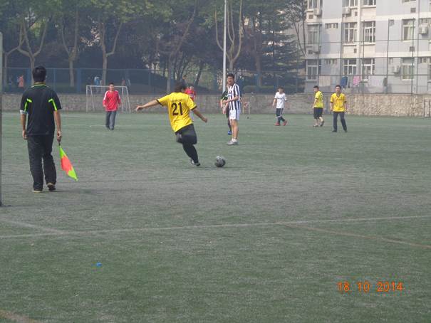 10月11日,我院研究生会组织开展的秋季迎新杯足球赛如期举行。该比赛以“友谊第一,比赛第二,重在参与”为原则,以“青春洋溢激情,团结造就奋进”为主题,以“丰富校园生活,加强团队合作”为目标而开展。