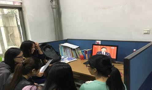 来自博1511班党支部的几位同学,在学习习总书记讲话的同时,也不时扬起激烈的讨论。从“十送红军”的依依不舍,到“茅台相迎”的军民佳话,再到“歃血为盟”的民族团结,党群心、军民情,一个个故事娓娓道来,如饮甘泉。在谈到重走万里长征路时,她们希望将来有机会去看看革命先烈们曾经走过的路、跨过的河、爬过的山,重温历史,不忘初心。