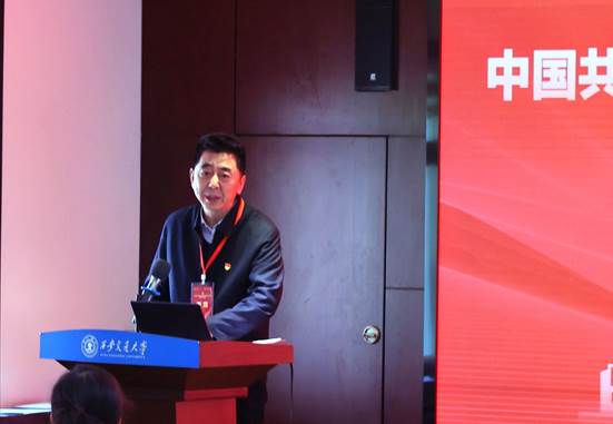李义宝同志代表学院党委作党费收缴、使用和管理情况的报告。